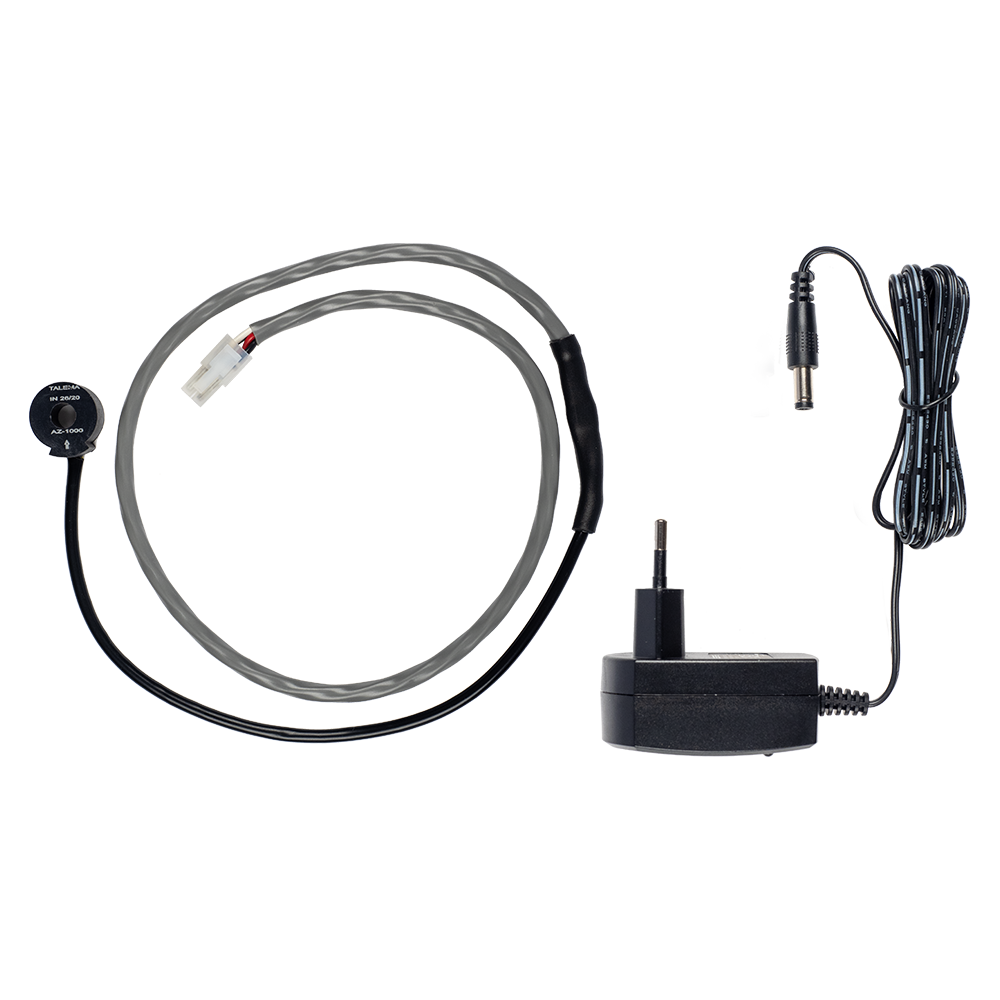 Set of 1 current transformer, maximum 1-phase 40A, if there is no smart kWh-meter with P1-port. VD max. 10 mm, including 12V power adapter.